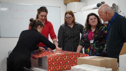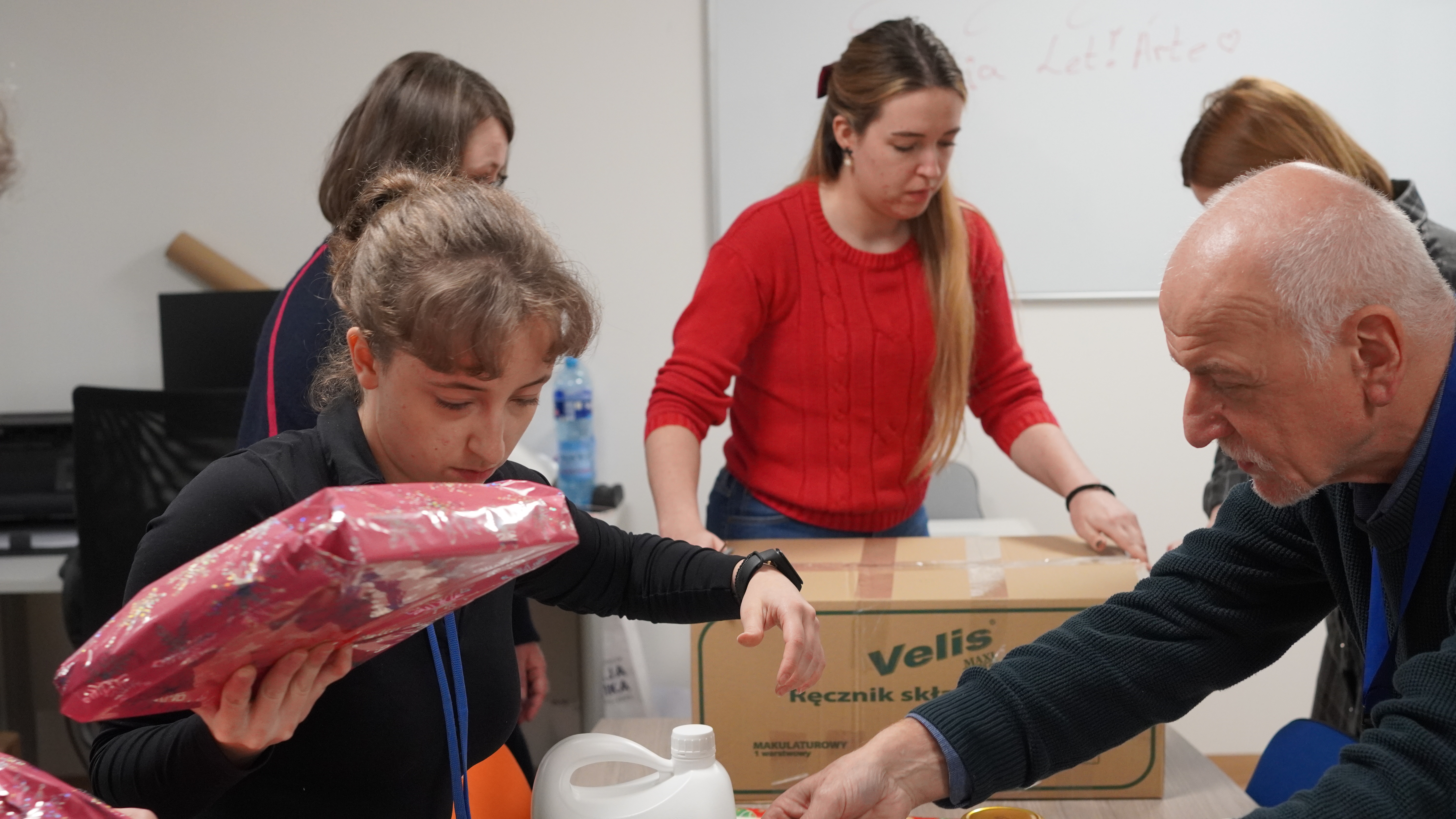 - studentom i doktorantom, którzy pakowali prezenty, a szczególnie Roksanie, Adzie i Milenie, które wraz z Anią zawiozą nasze paczki.